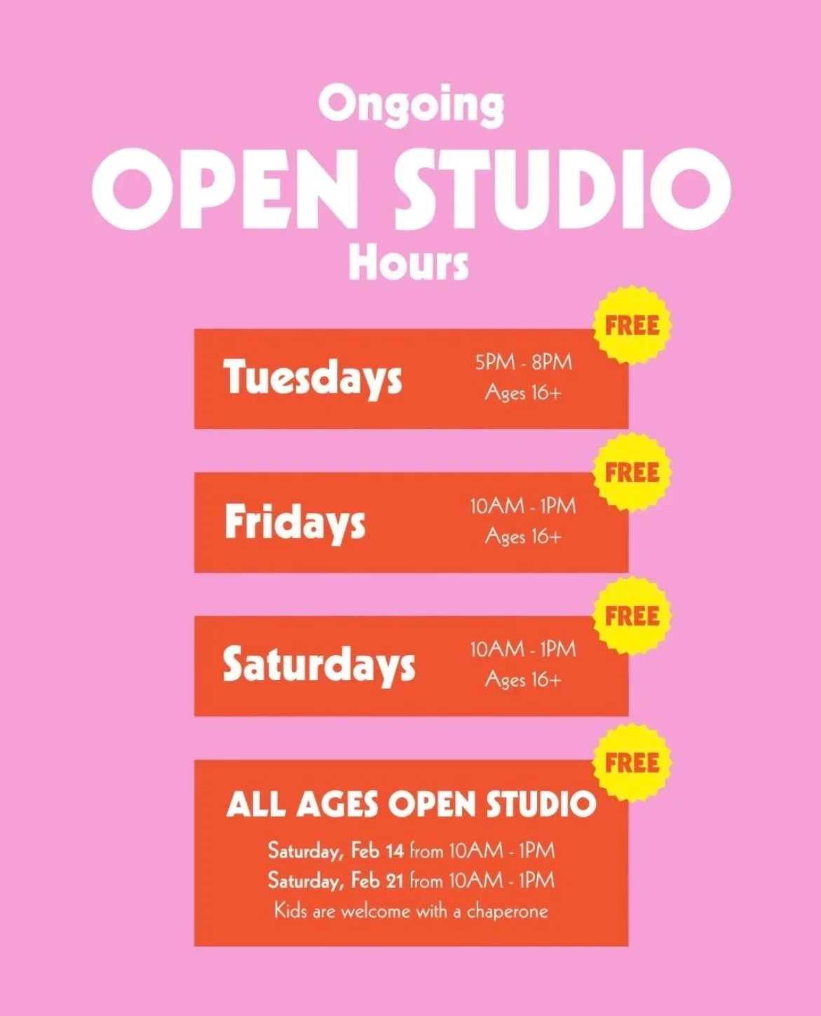 In the month of February we are opening the space on Fridays from 10am - 1pm for individuals ages 16+. Come explore our space and materials and get your next project underway!