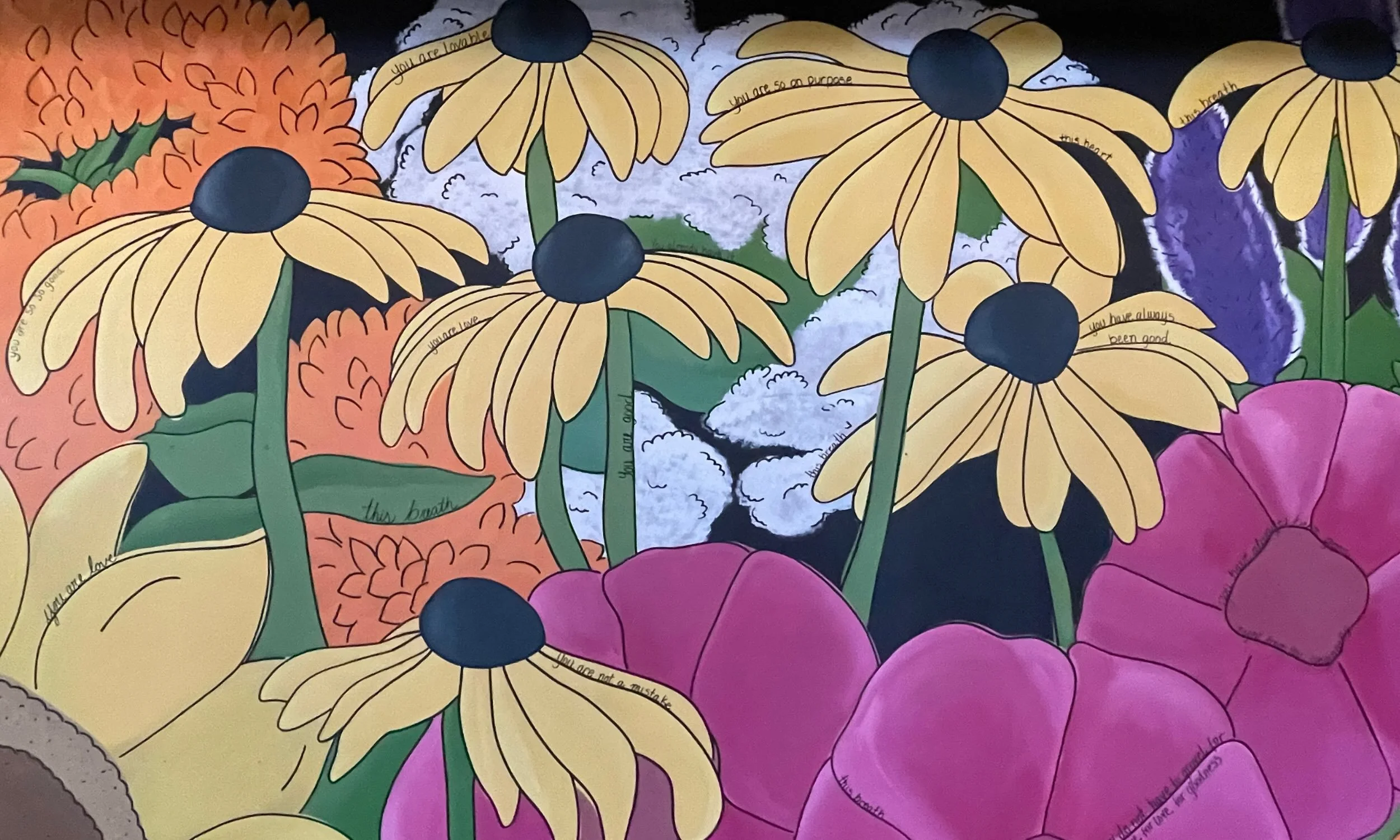 Mural by Cora Wright on display at Kalamazoo Backyard Yogis